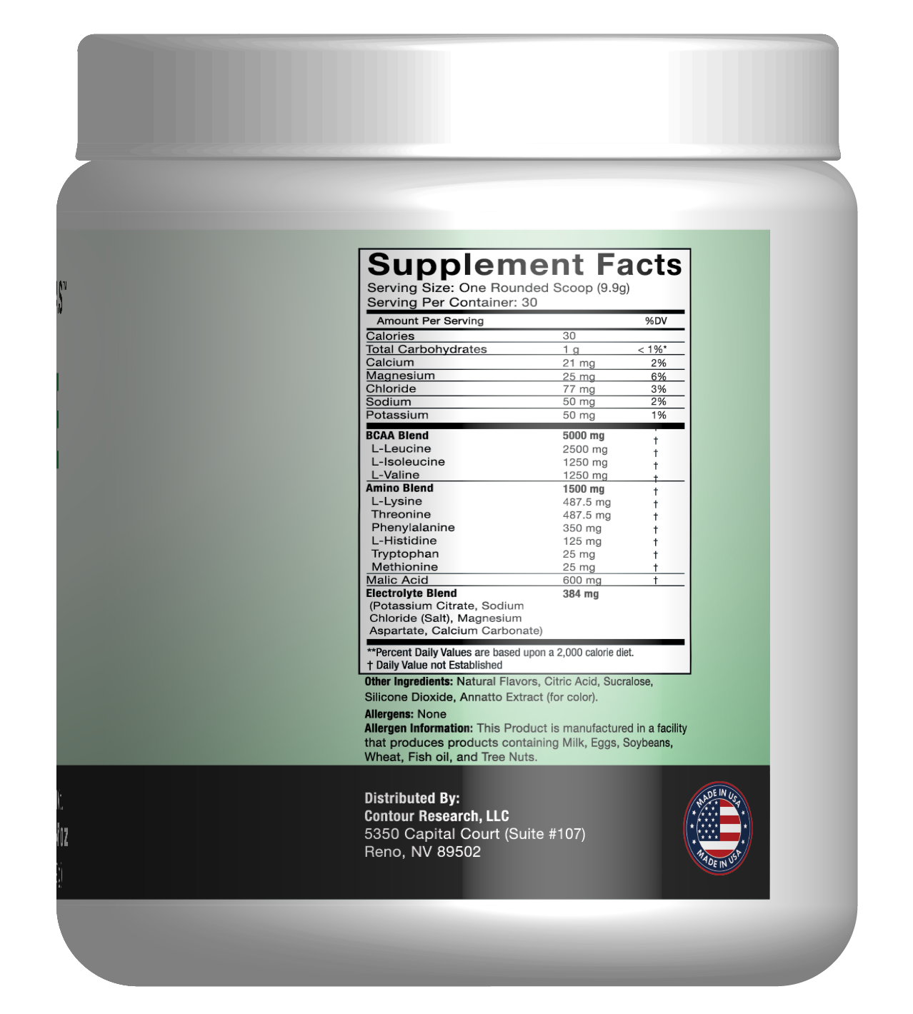 - BCAA Blend (L-Leucine, L-Isoleucine, L-Valine) — 5000 mg